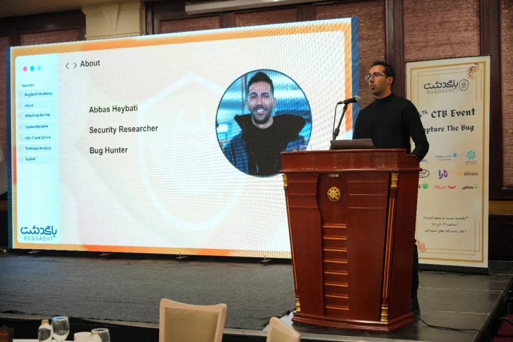 در این رویداد پس از خوشامدگویی مجری، اولین مقاله امنیتی توسط جناب اقای مهندس هیبتی برای حضار ارائه گردید. موضوع مقاله تکنیکهای جدید “File Upload Bypass” بود.